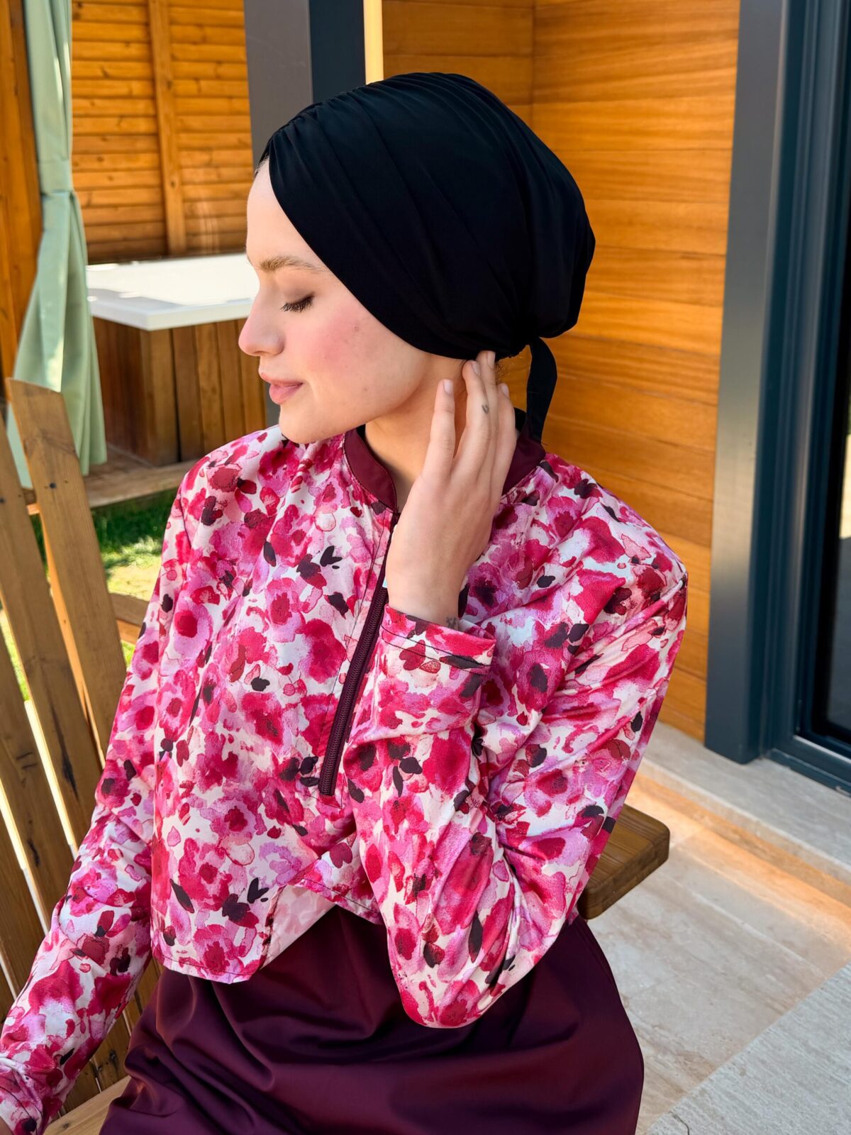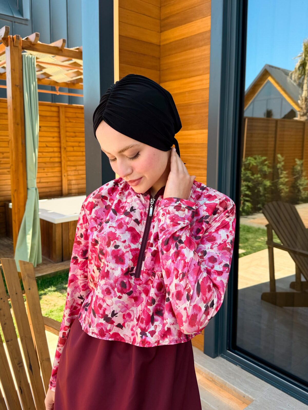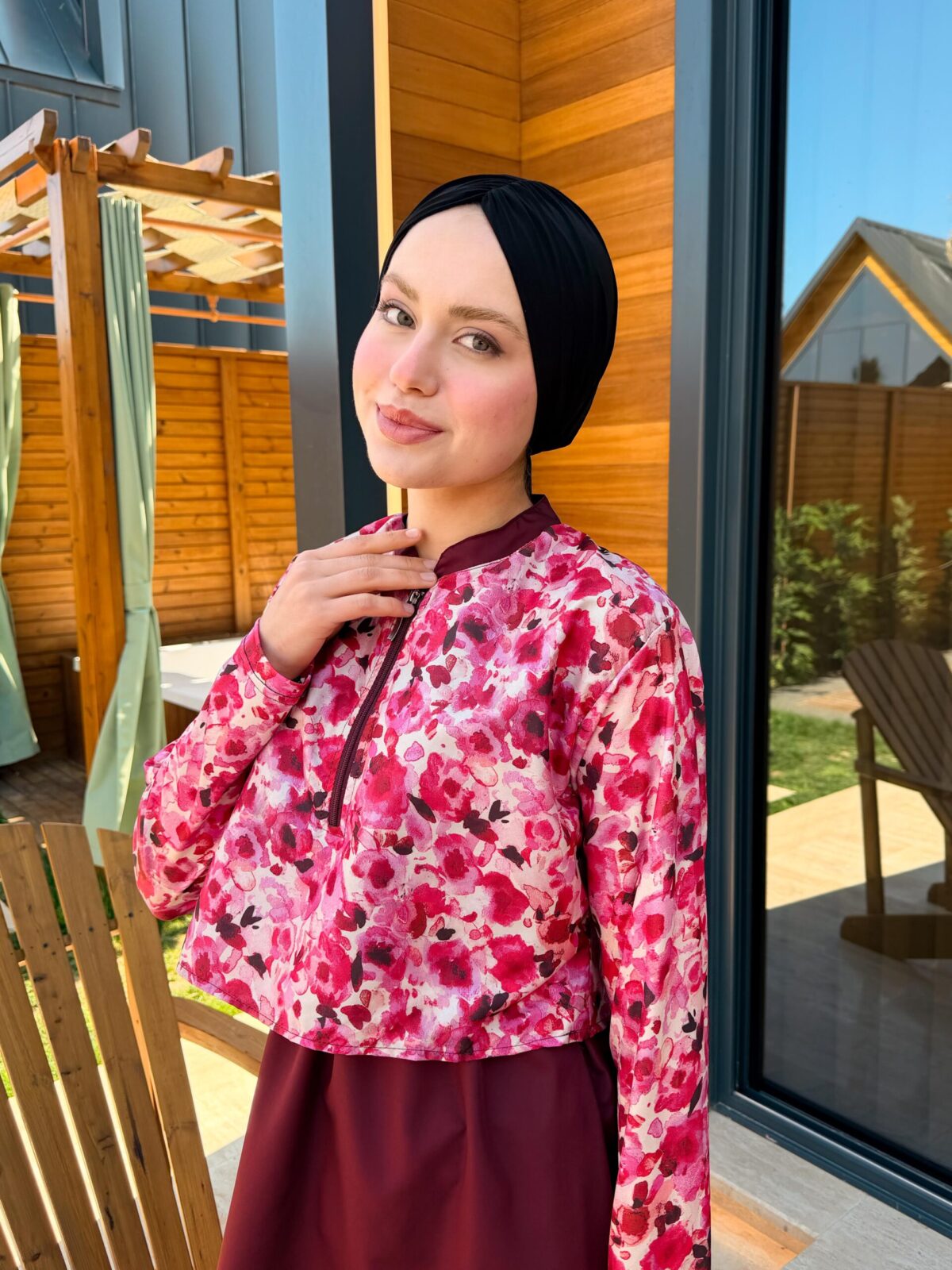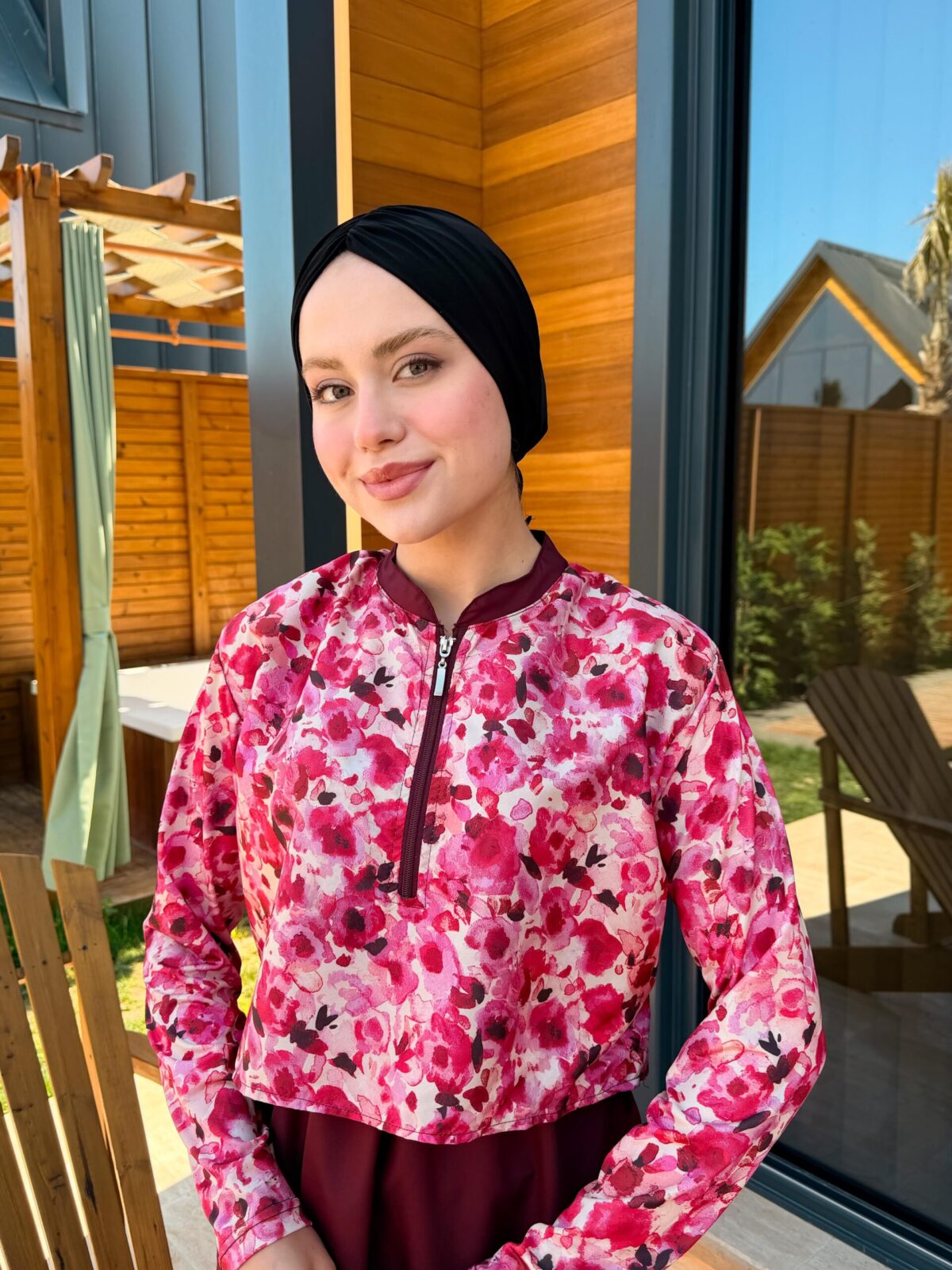 CROP MODEL TESETTÜR MAYO – BORDO ÇİÇEK DESEN