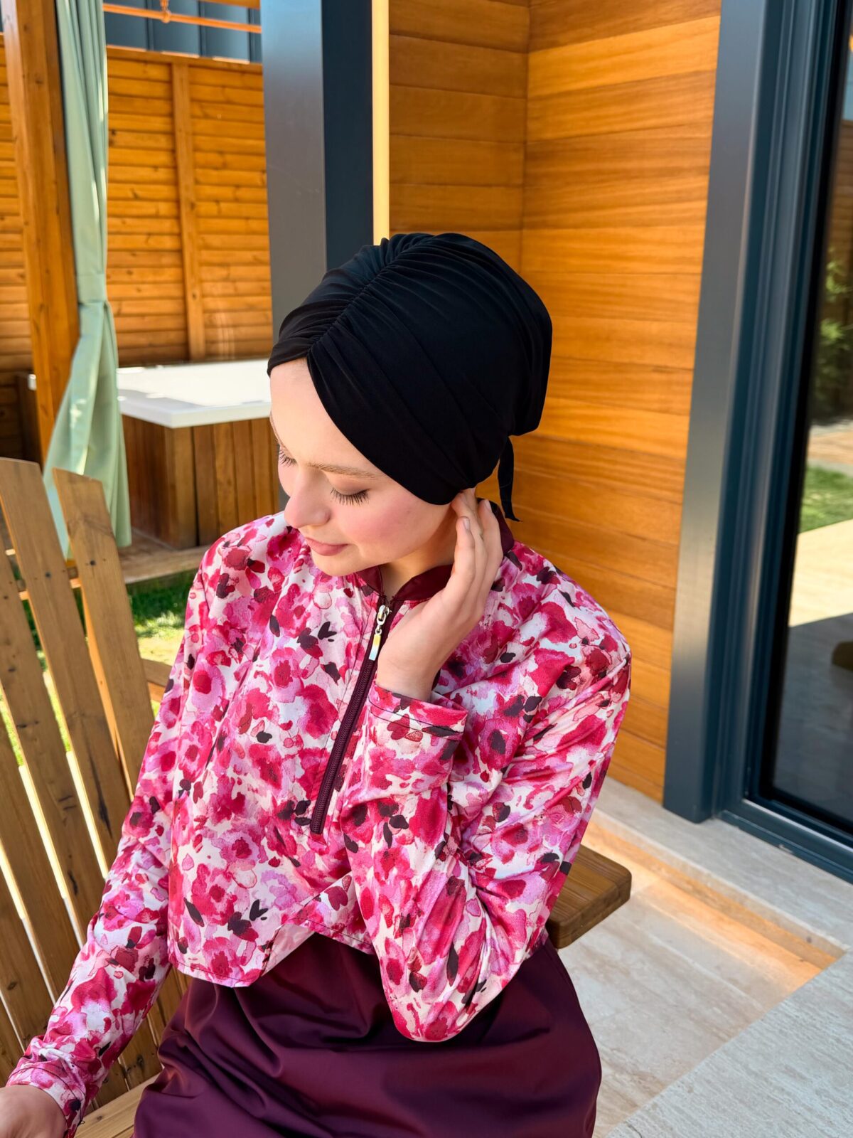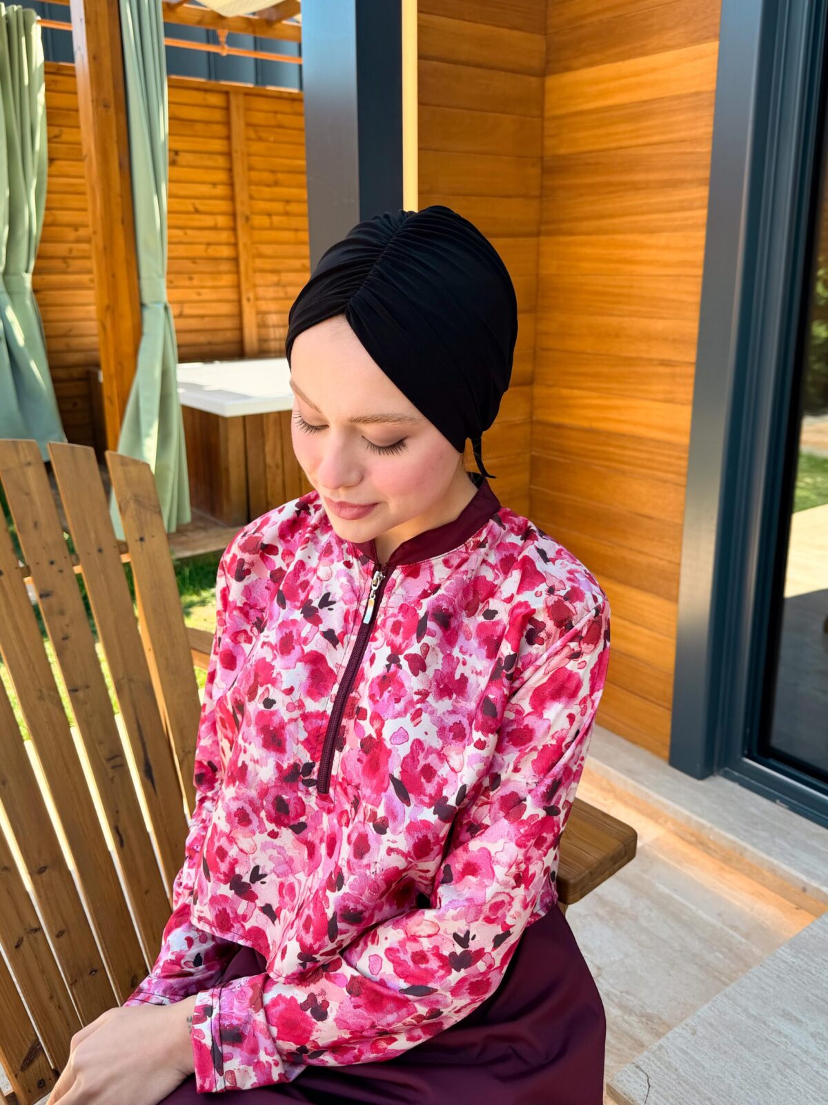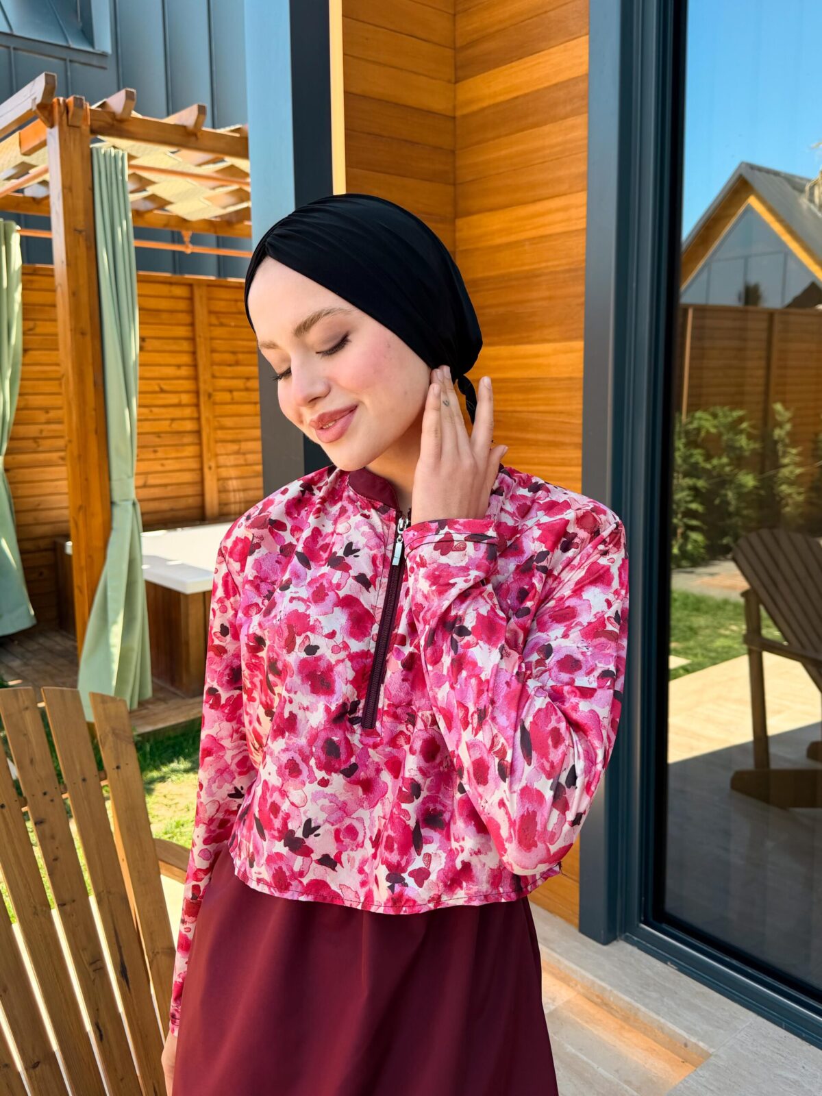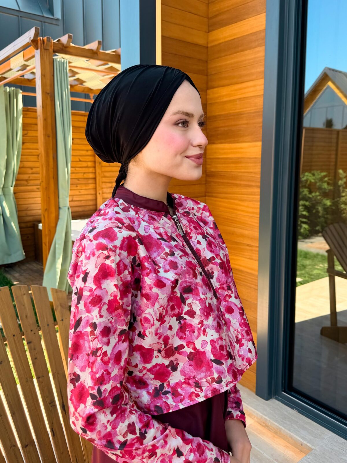 CROP MODEL TESETTÜR MAYO – BORDO ÇİÇEK DESEN