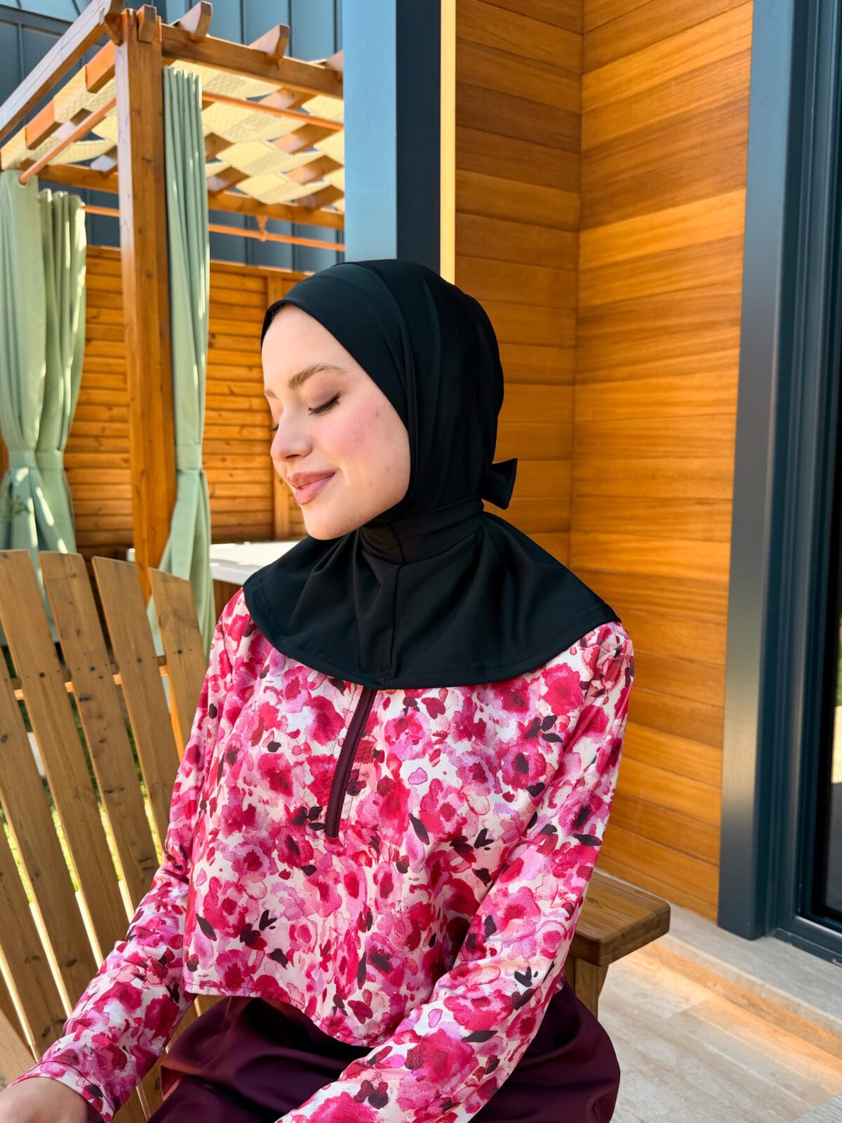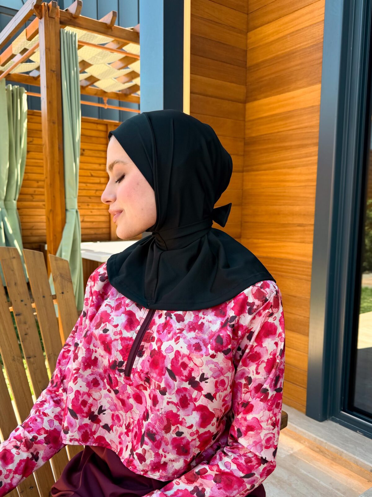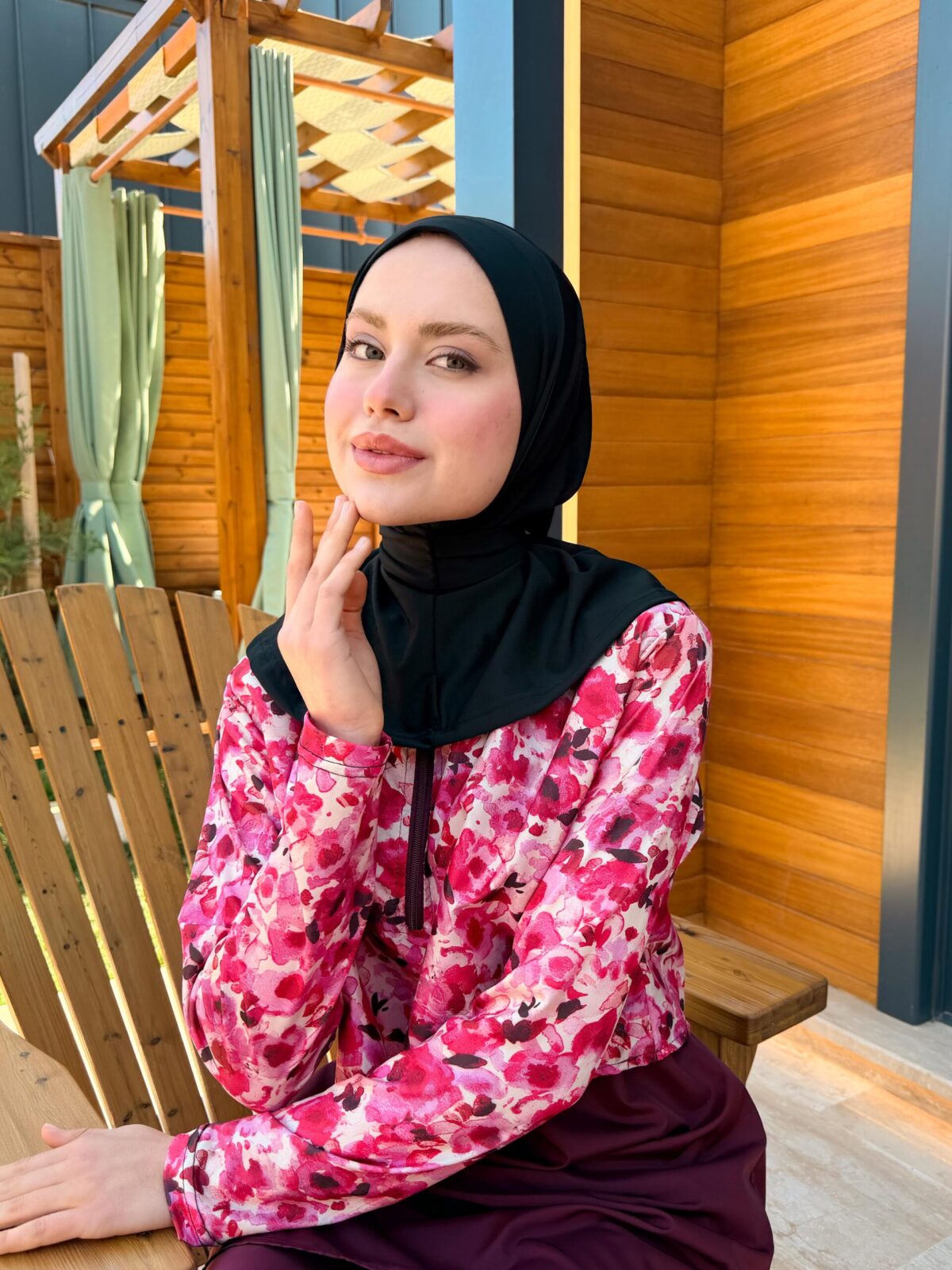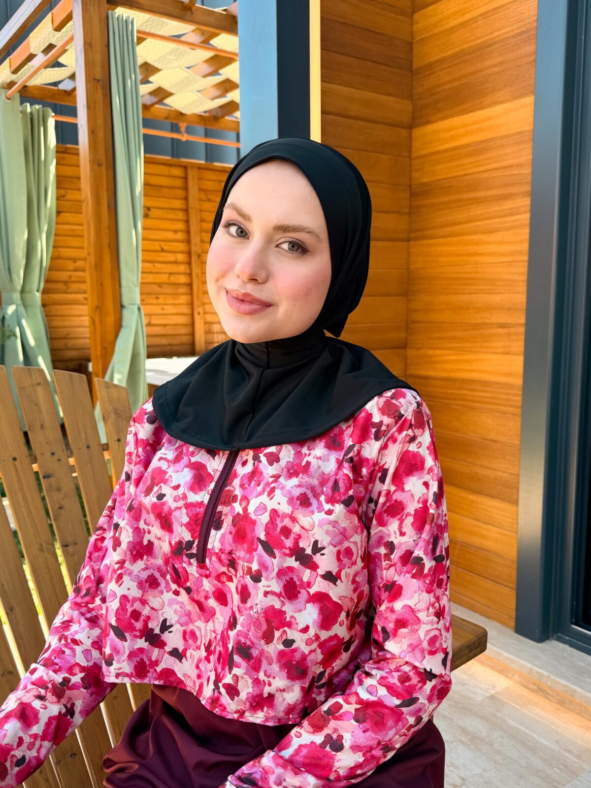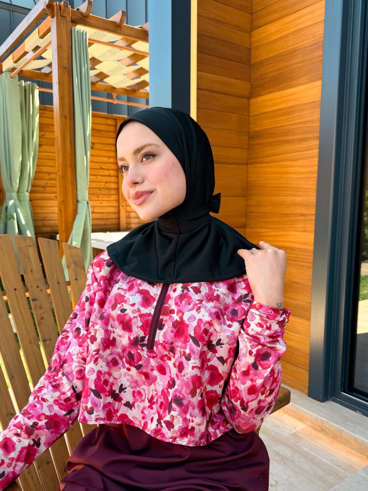 PARAŞÜT KUMAŞ TESETTÜR MAYO UZUN - BORDO ÇİÇEK DESEN