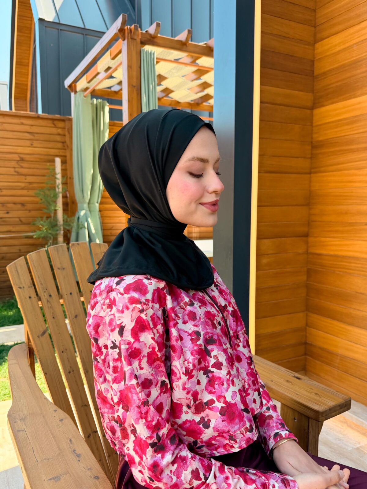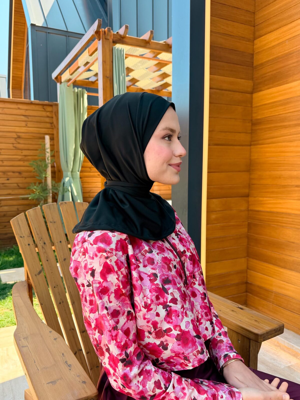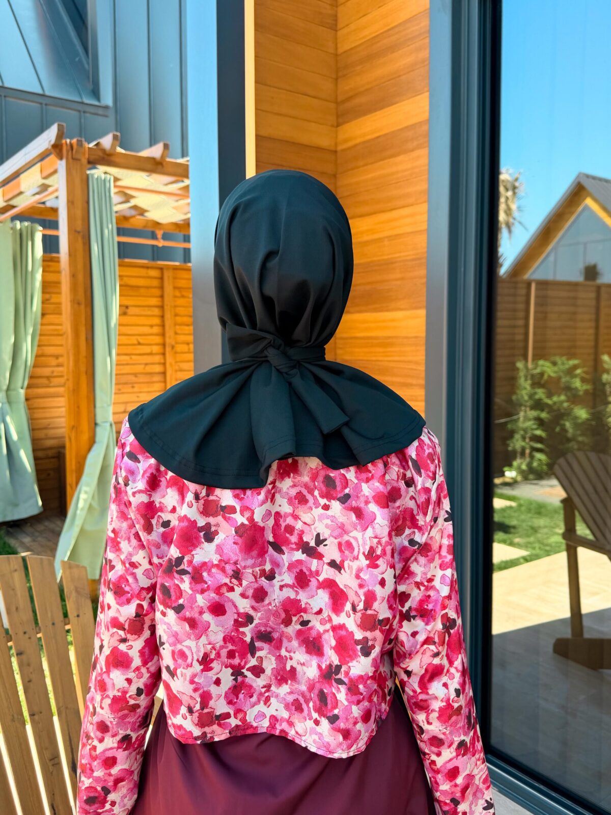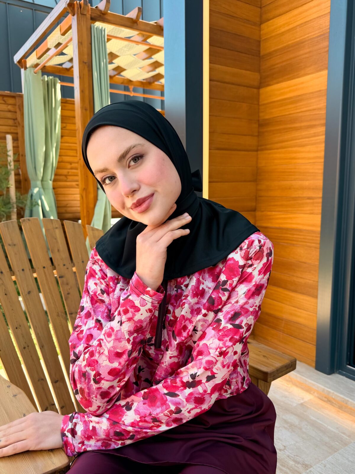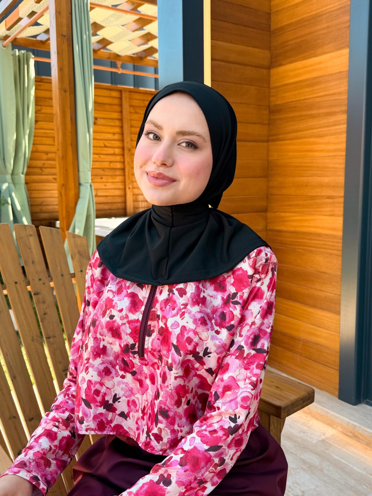 PARAŞÜT KUMAŞ TESETTÜR MAYO UZUN - BORDO ÇİÇEK DESEN