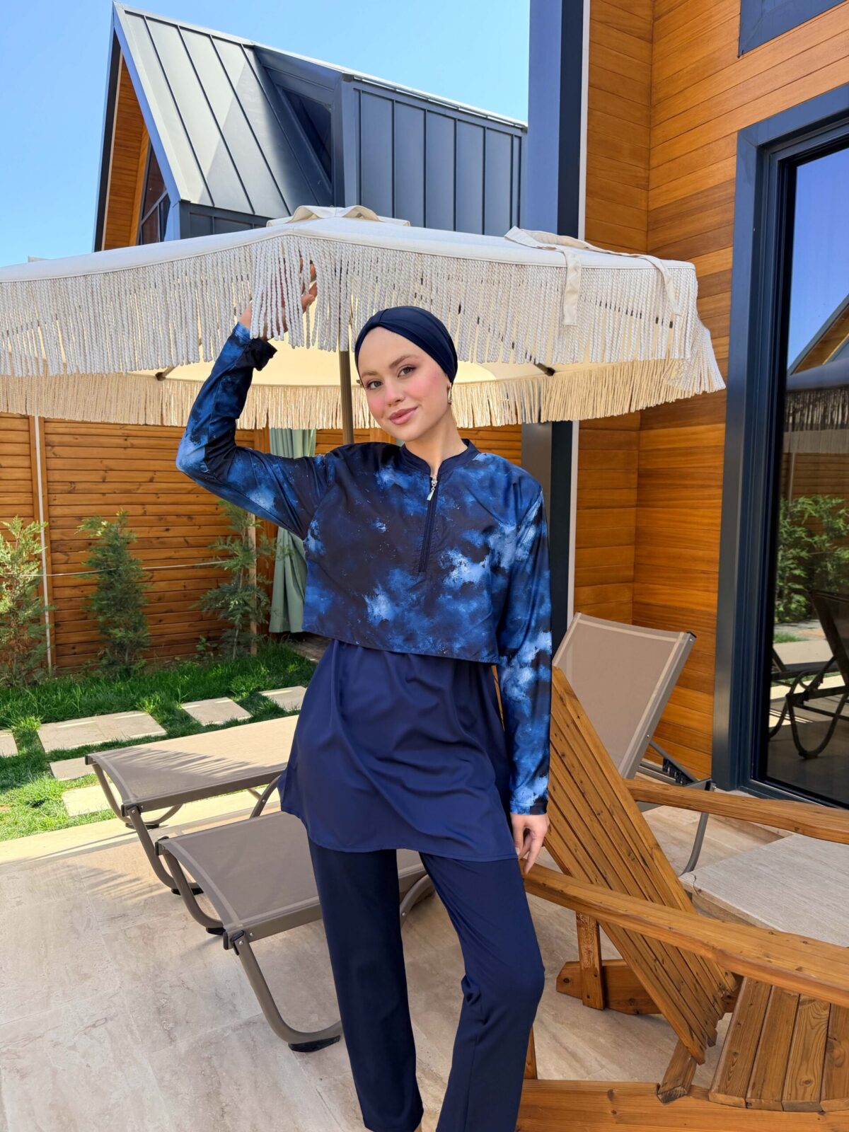 CROP MODEL TESETTÜR MAYO – MAVİ GALAKSİ DESEN