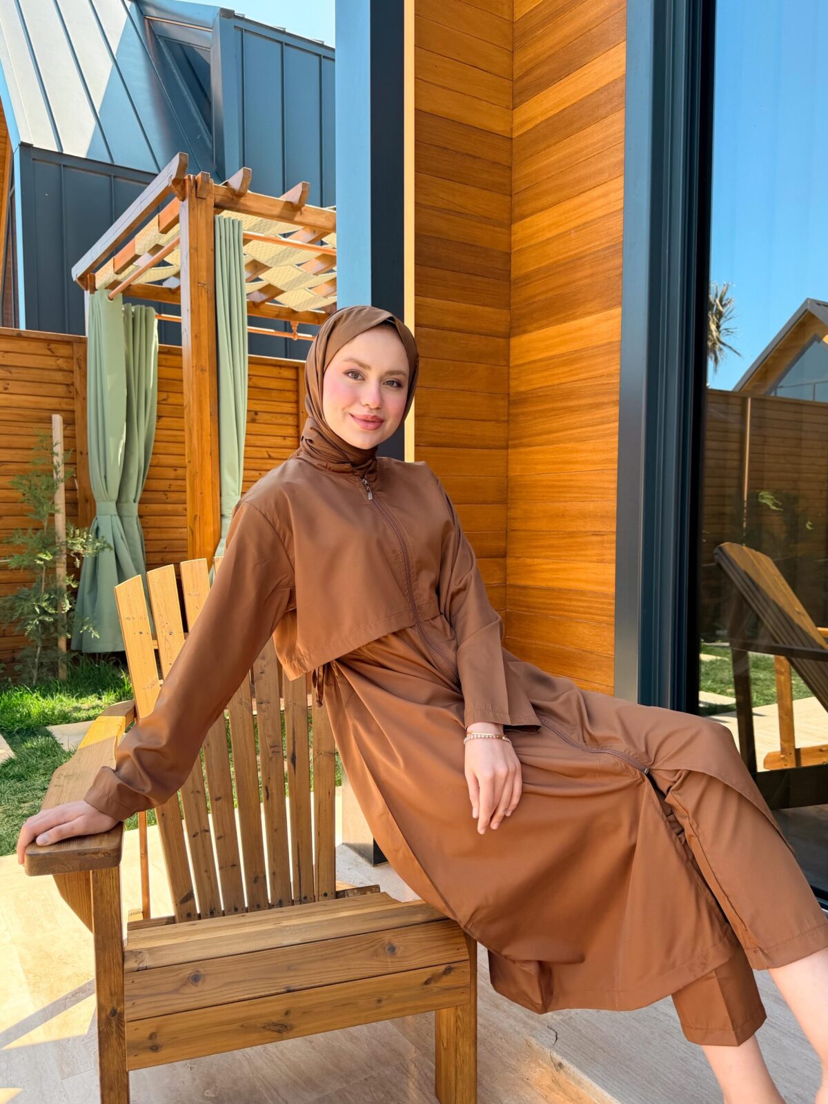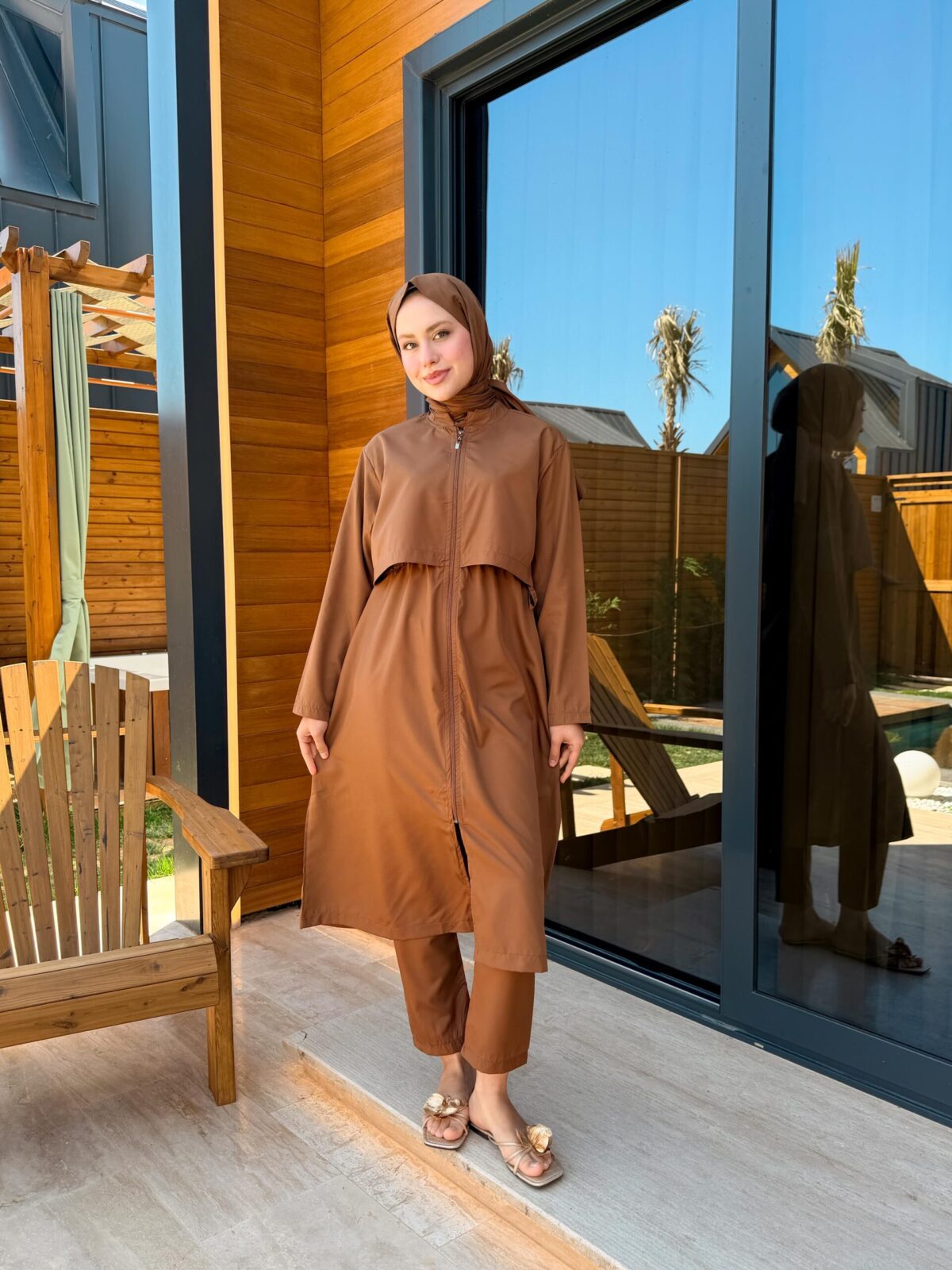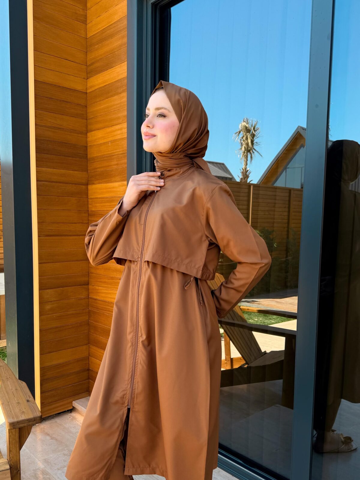 PARAŞÜT KUMAŞ TESETTÜR MAYO UZUN – KAHVERENGİ UZUN