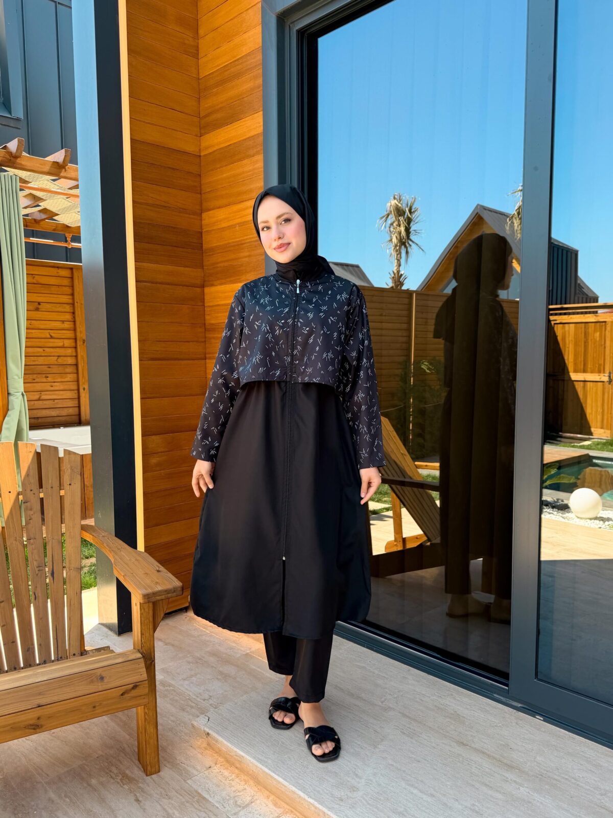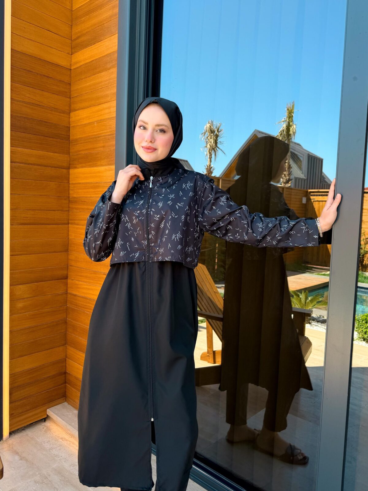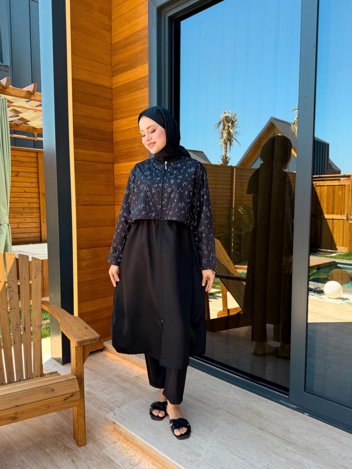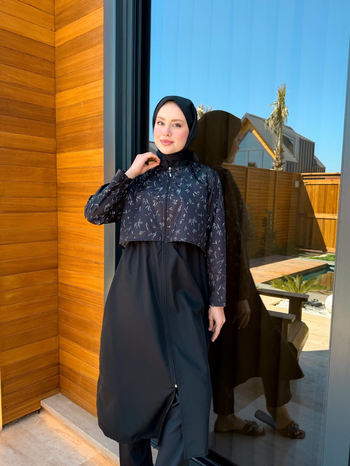 PARAŞÜT KUMAŞ TESETTÜR MAYO UZUN – SİYAH BEYAZ