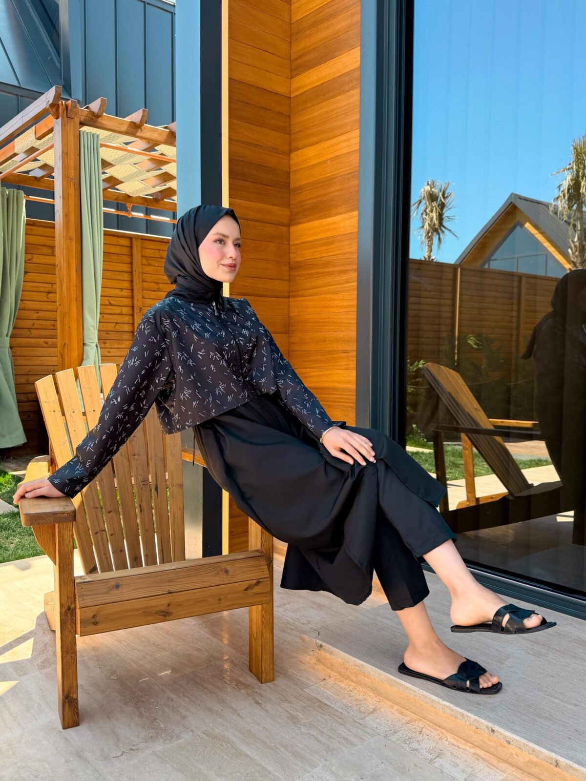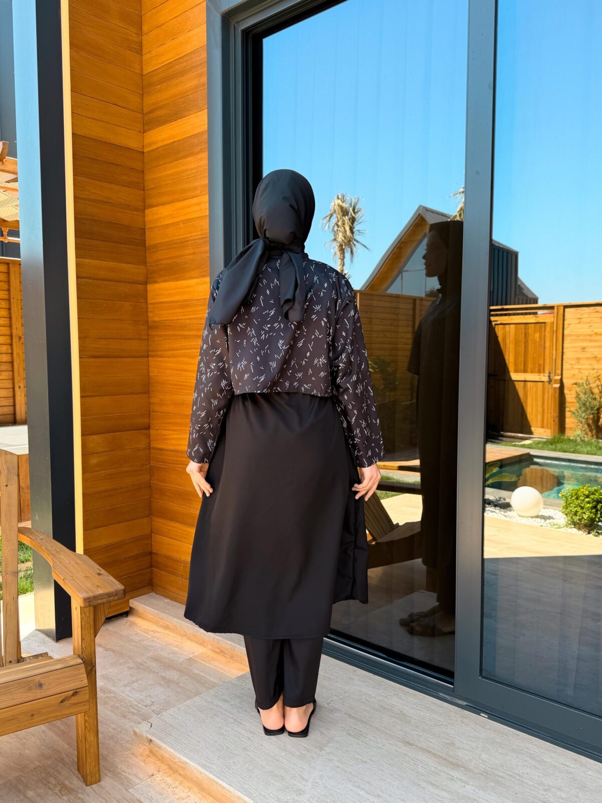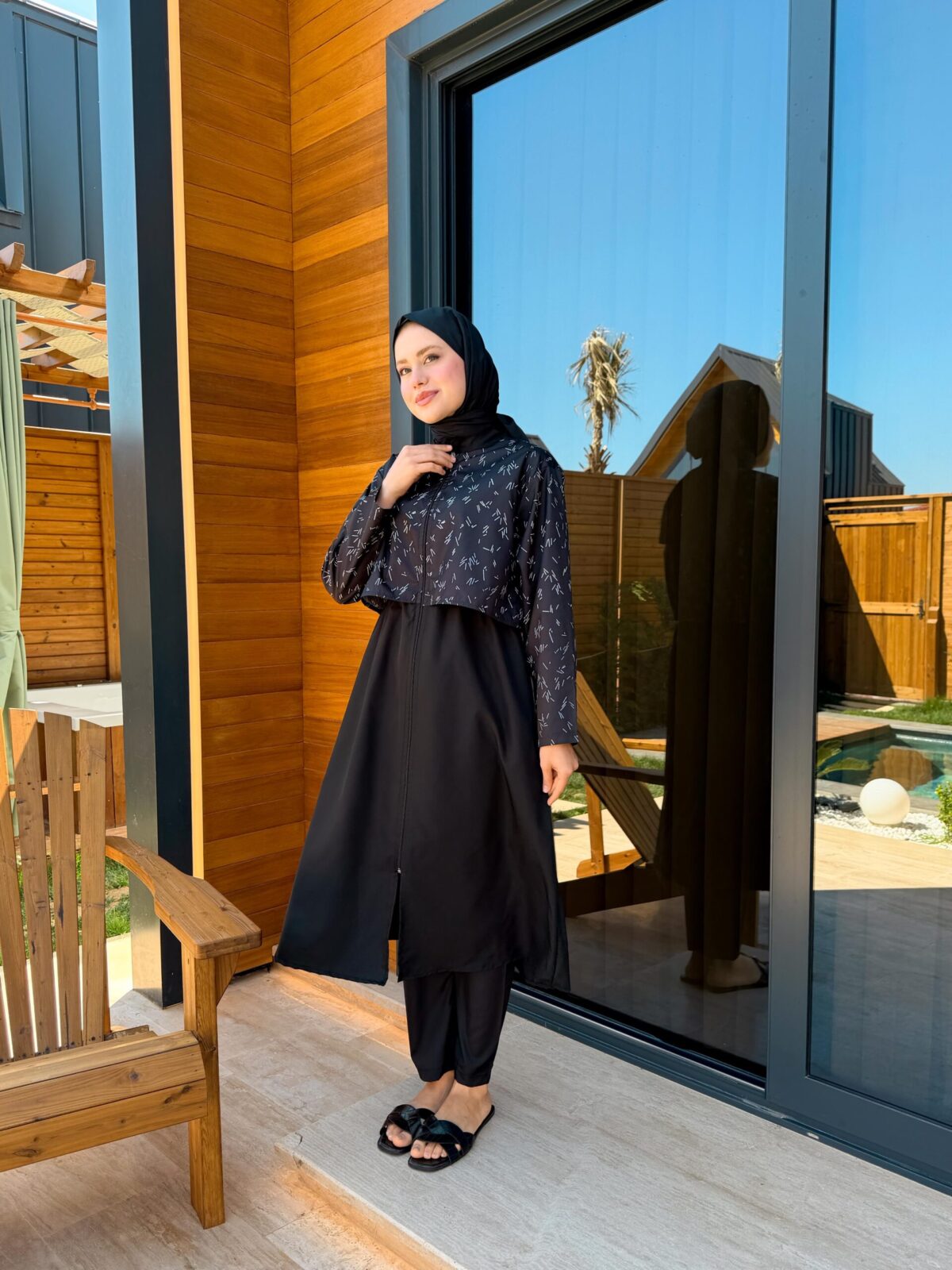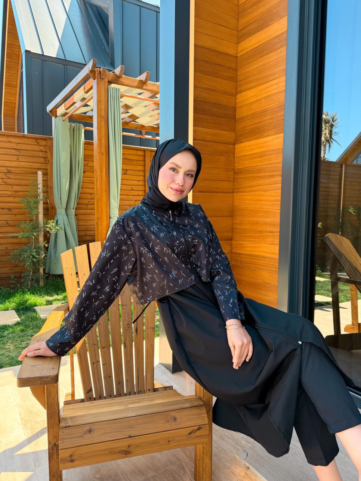 PARAŞÜT KUMAŞ TESETTÜR MAYO UZUN – SİYAH BEYAZ