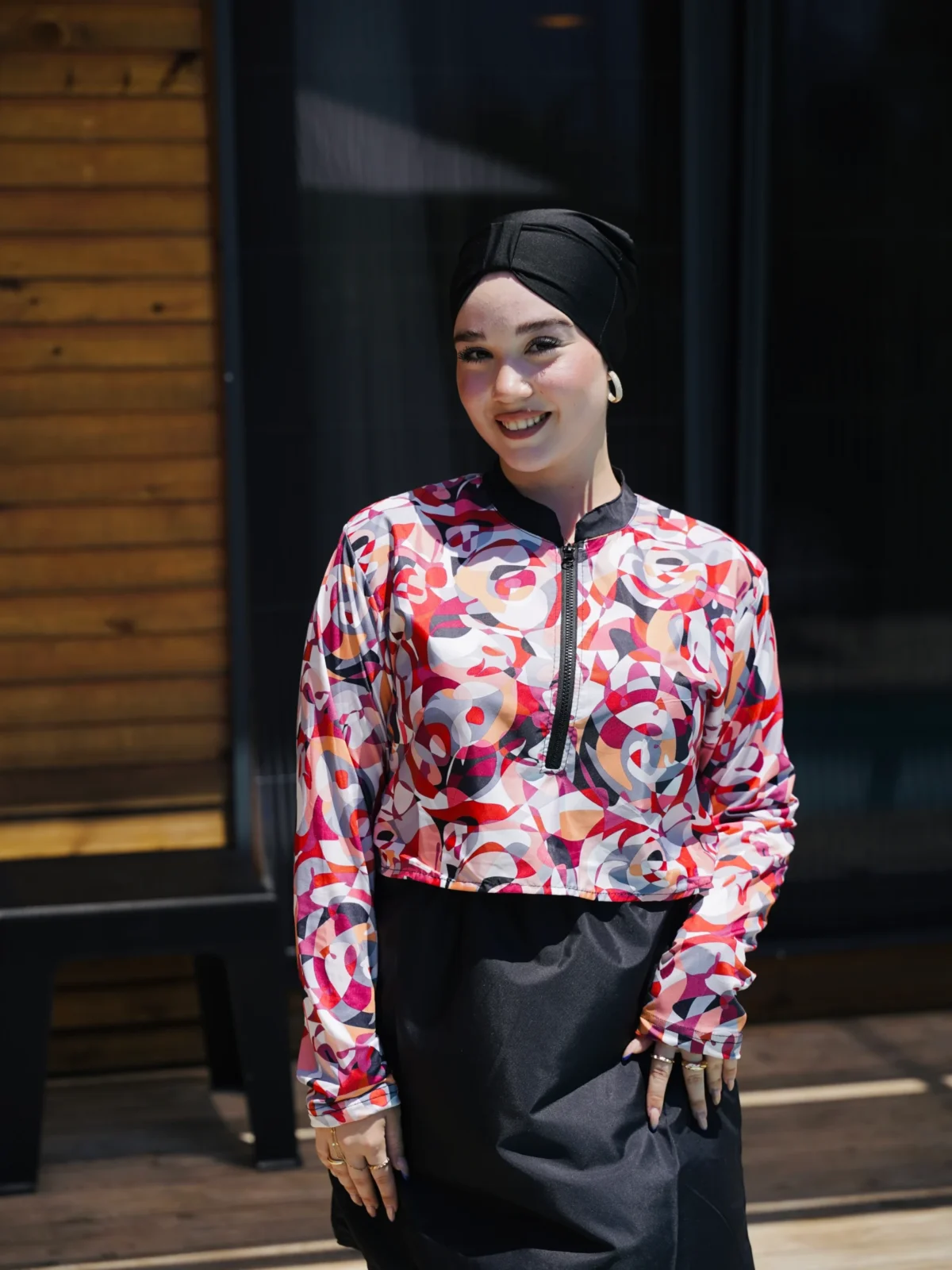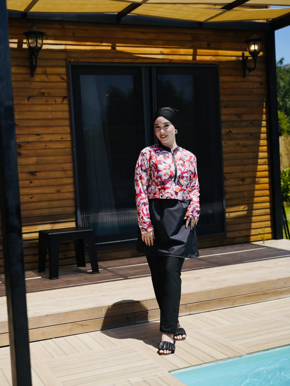 CROP MODEL TESETTÜR MAYO - SİYAH KIRMIZI DESEN adet